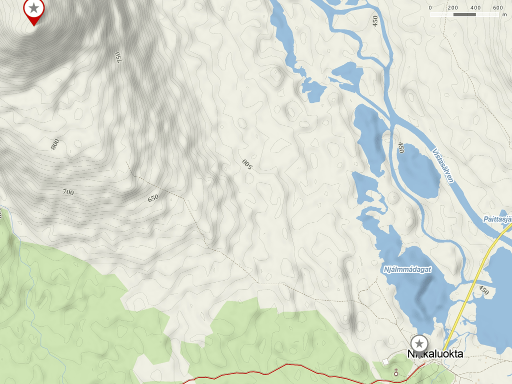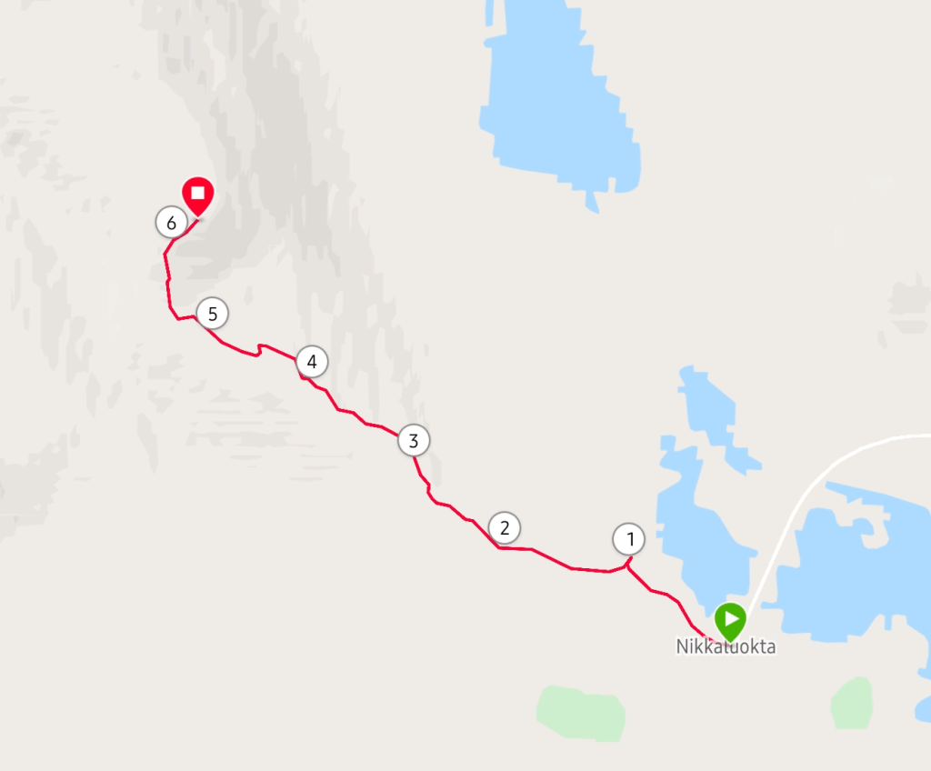 So I picked to closest hill to Nikkaluokta that seemed accessible by hiking, suited for launching and provides a glide ratio for a paragliding flight back.