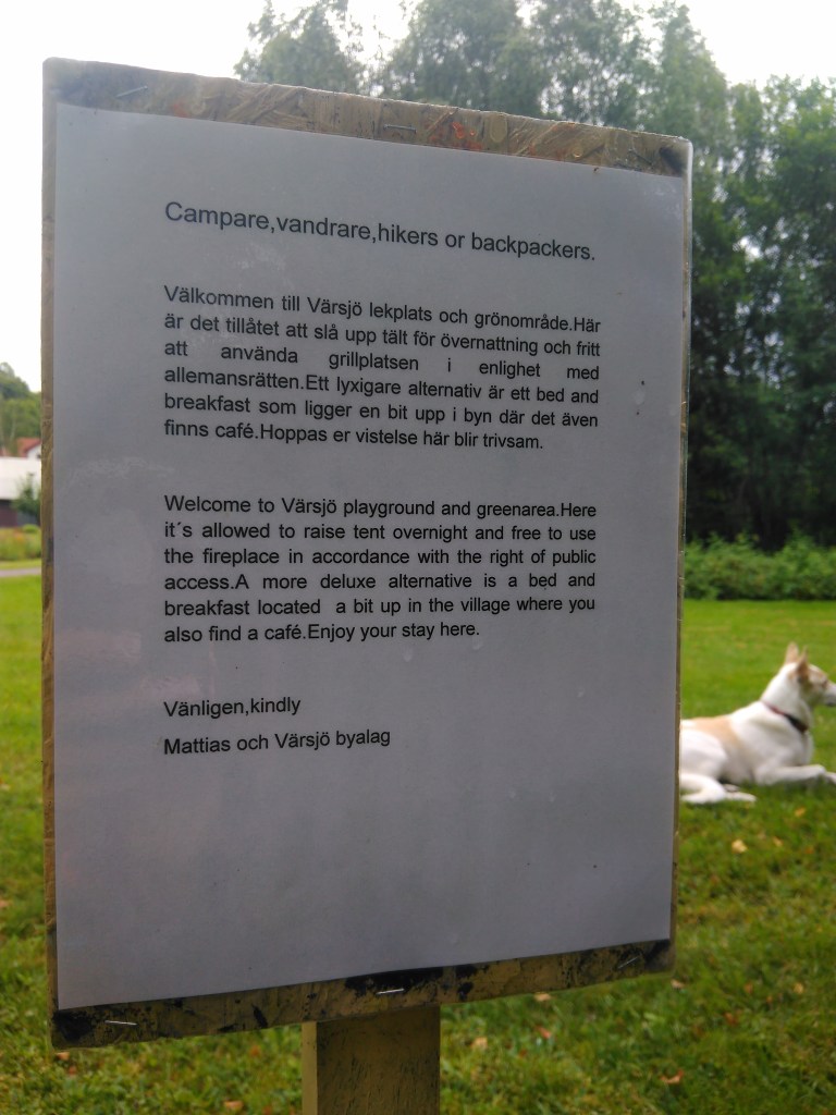 Hier ist es erlaubt ein Zelt über Nacht aufzustellen und den Grillplatz zu benutzen, gemäß Jedermannsrecht.